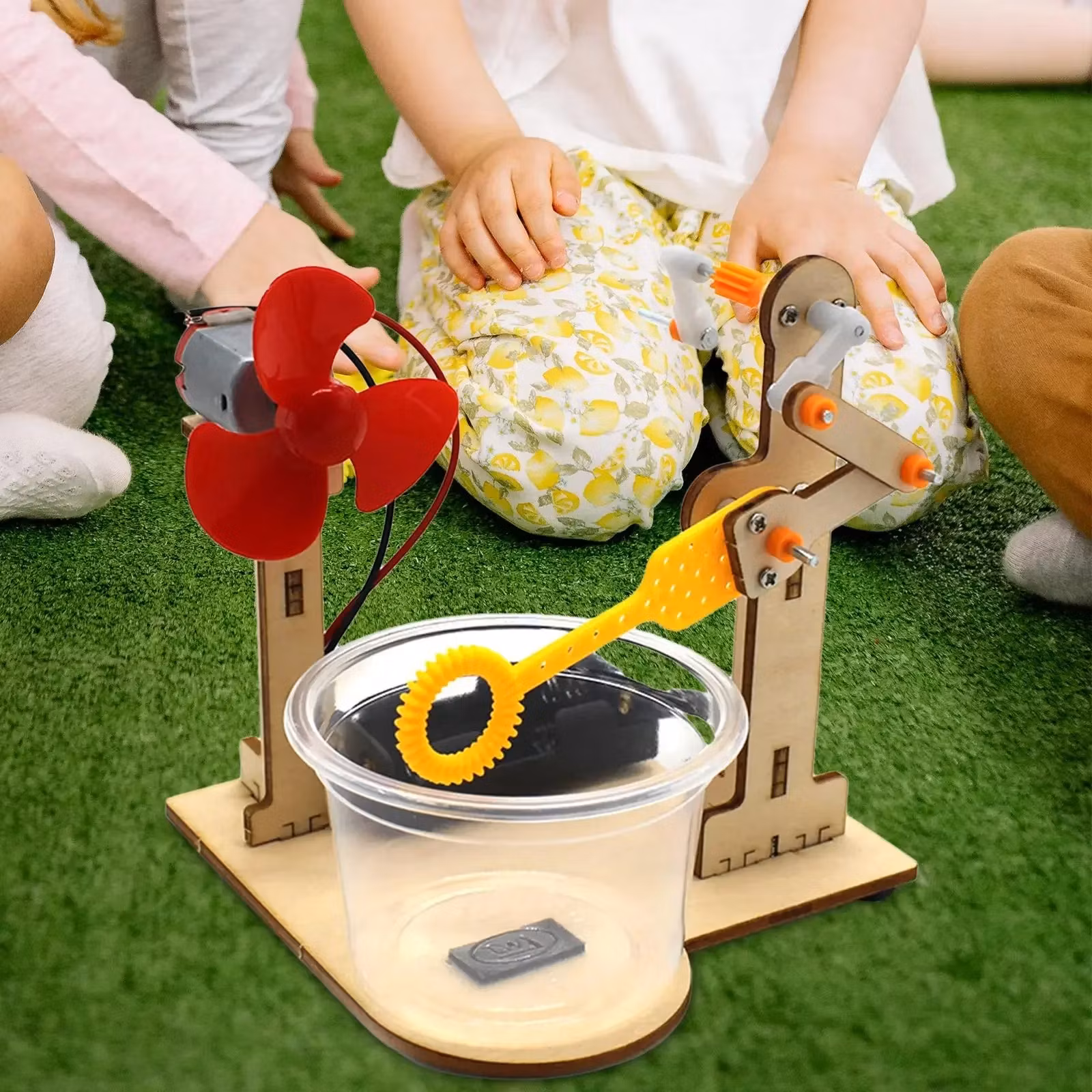 【Material】DIY handvevd bubbelmaskin experimentell leksak är tillverkad av högkvalitativt trämaterial, som är hållbart och slitstarkt, kan användas under lång tid.